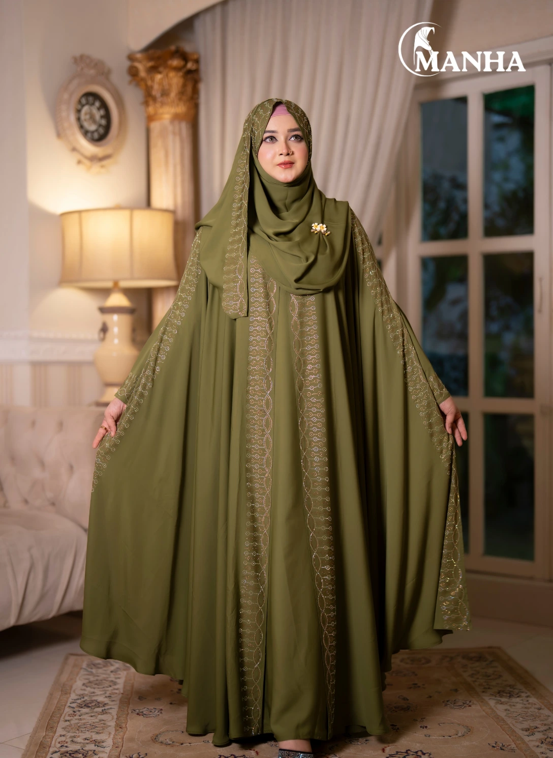 Olive Green Shehjadi Abaya